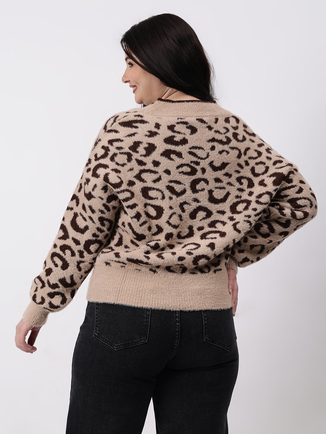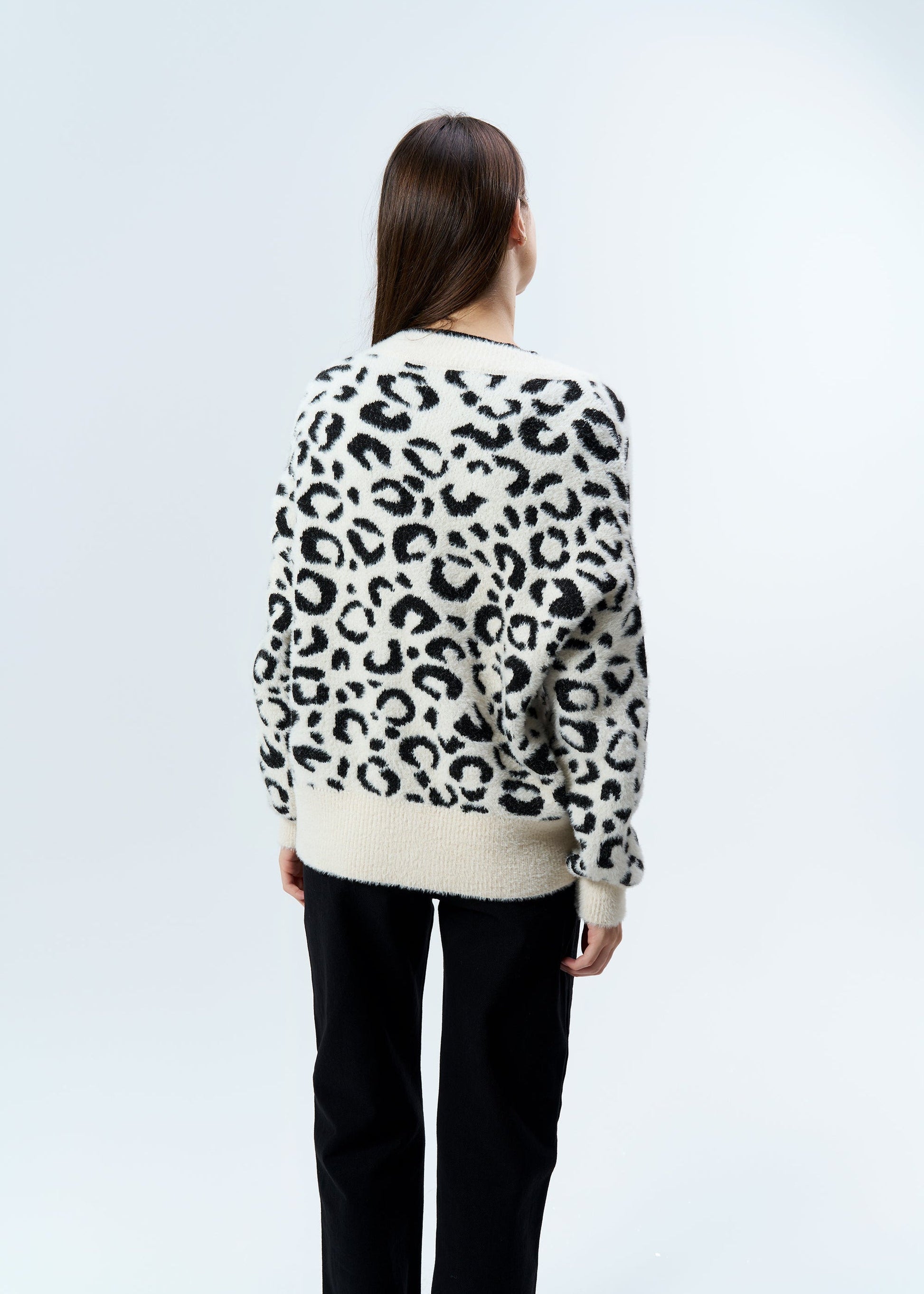 Take a walk on the wild side with our Angora Wool Leopard Print Cardigan. Crafted with soft and luxurious angora wool, this cardigan adds a touch of boldness to any outfit. Stay warm and make a statement in this must-have piece!You'll be the cat's meow in this luxurious cardigan made from soft angora wool. Not only will you stay warm and cozy, but you'll also add a touch of playfulness to any outfit. Don't be surprised if you find yourself purring with satisfaction while snuggling up in this meow-nificent addition to your wardrobe.