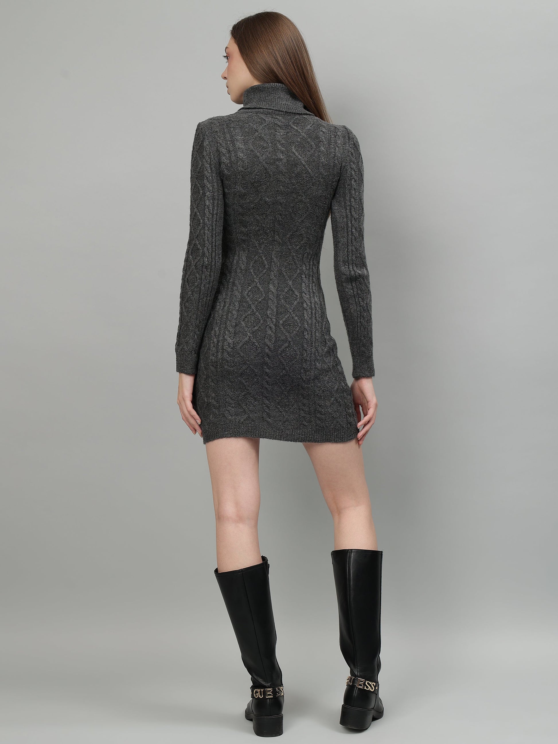 Stay cozy and stylish this winter with our Cable Knit Round Neck Winter Dress. Made with a soft cable knit fabric, this dress is perfect for chilly days. Its classic round neckline adds a touch of elegance, while the cable knit pattern adds texture. Perfect for any occasion, this dress will keep you warm and fashionable.
