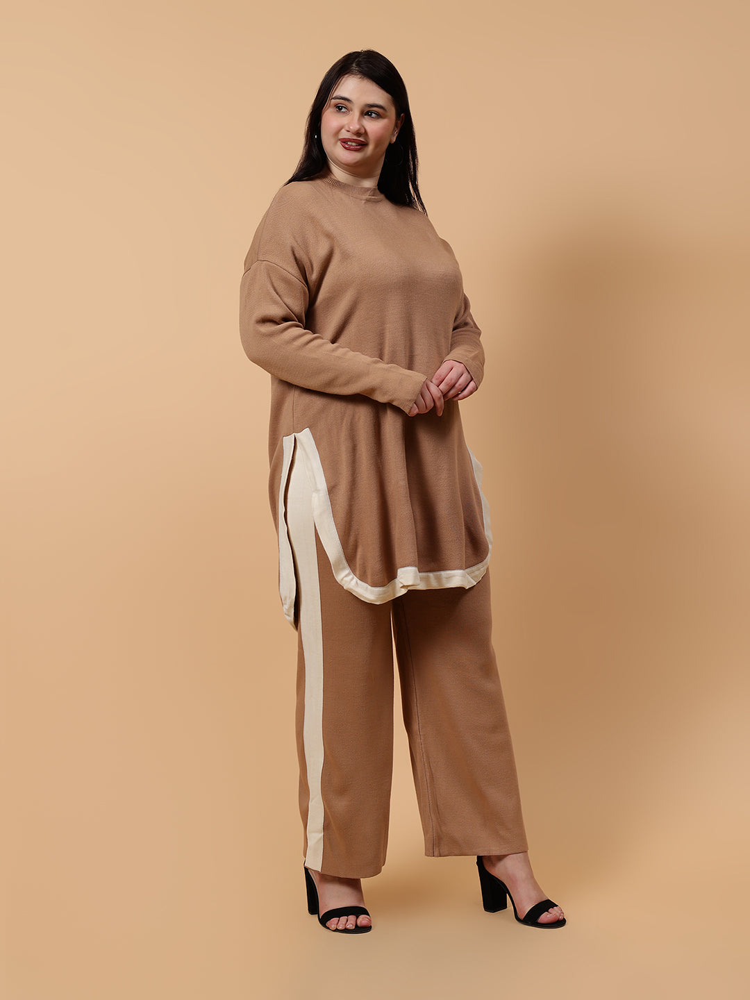 Gaiia Co-Ord Set Plus Size Knitted - Beige