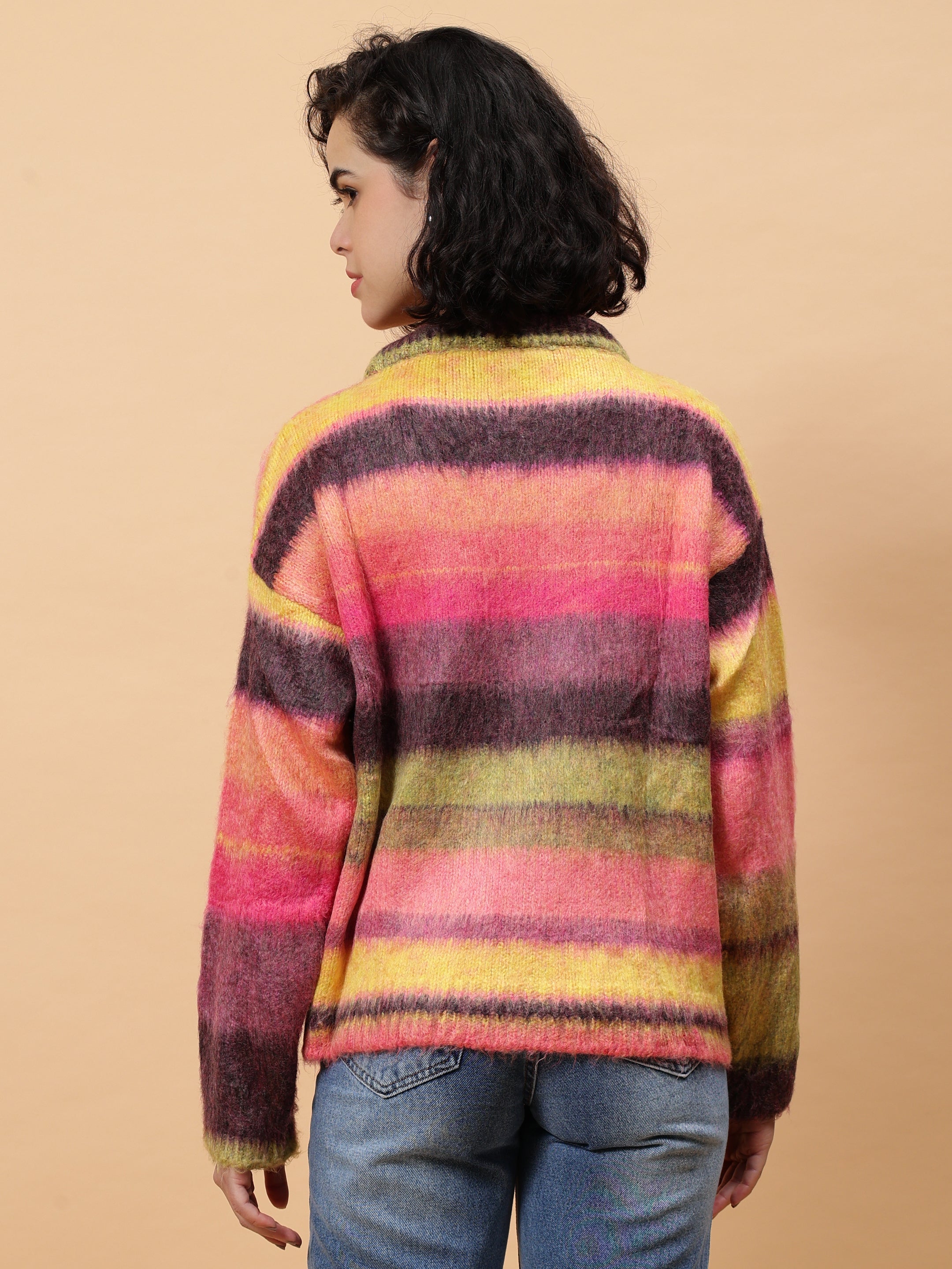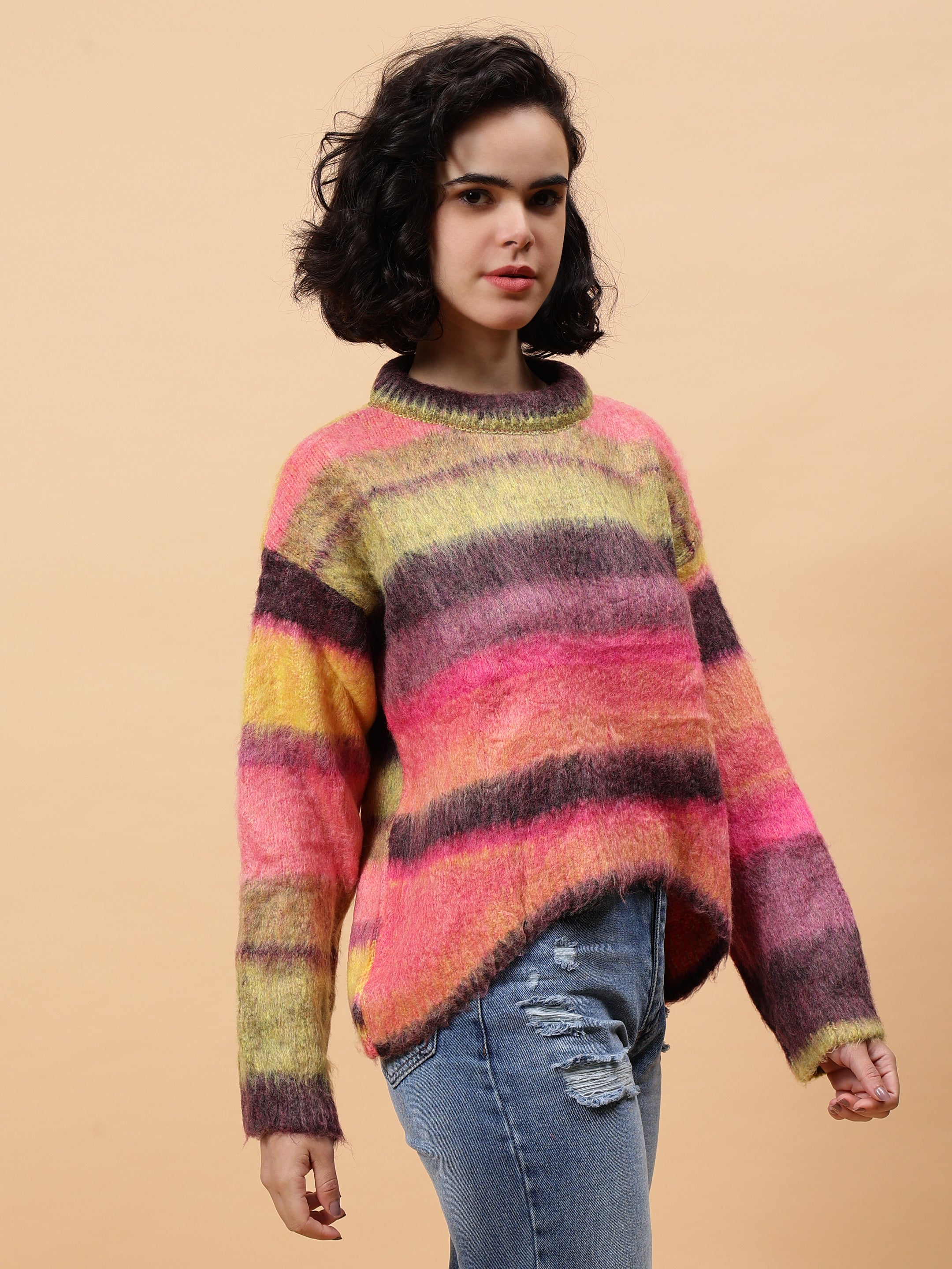 Introducing our Colourful Striped Sweater - a must-have for any fashion-forward wardrobe. With a bold and vibrant striped design, this sweater is sure to make a statement. Made with high-quality materials, it offers both comfort and style. Elevate your outfit game with this unique and eye-catching piece. This Colourful Striped Sweater is expertly crafted with a vibrant color palette, making it a stylish and eye-catching addition to your wardrobe. Made with high-quality materials, it offers both comfort and durability. Perfect for any occasion, this sweater is a must-have for any fashion-forward individual.