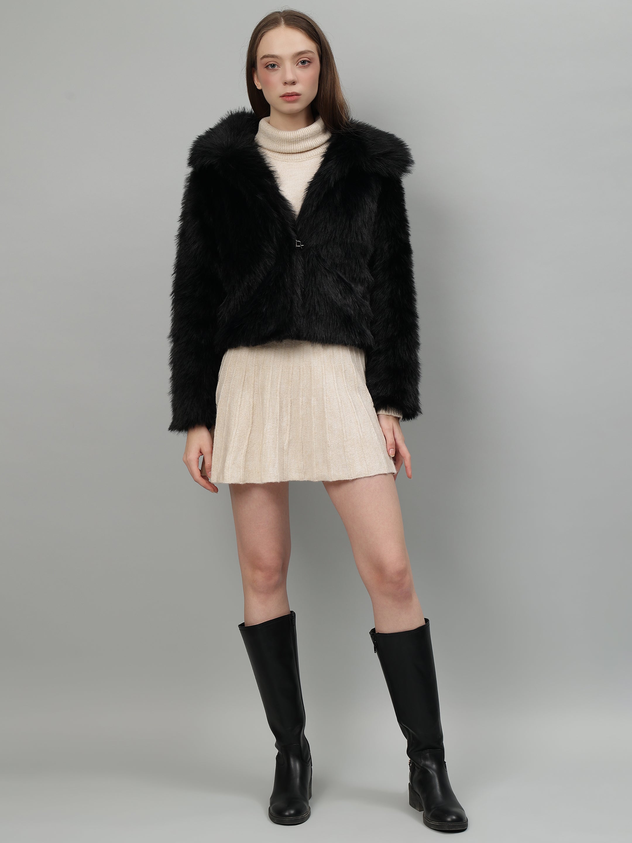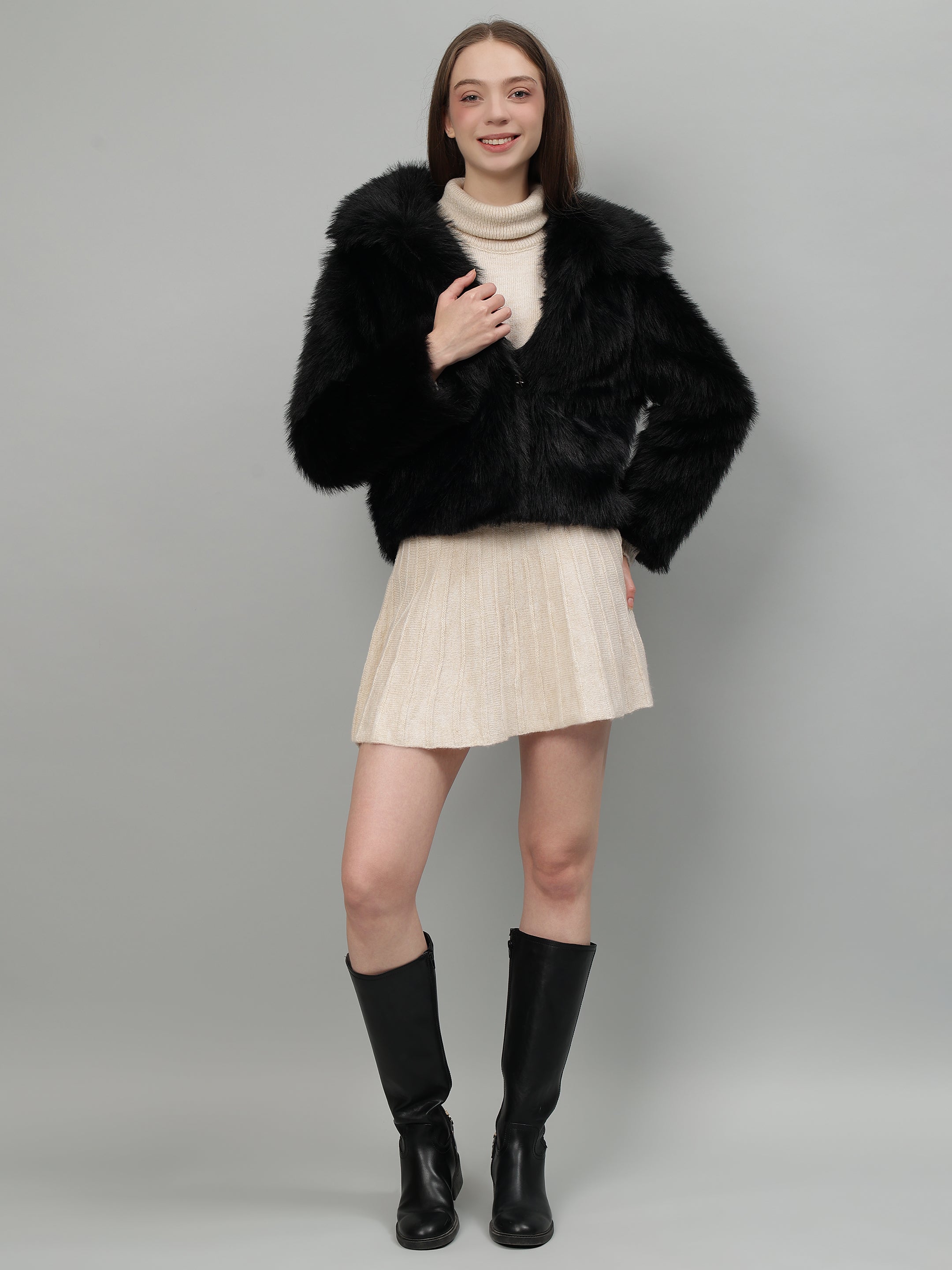 Experience the ultimate in cozy fashion with our Cosy Fur Cropped Jacket. Don't let chilly days keep you hidden in drab clothing - stand out with this quirky, stylish, and oh-so-comfortable jacket. With its plush faux fur and trendy cropped design, this jacket is sure to keep you warm and fashionable all season long. Don't miss out on this must-have addition to your wardrobe!Snuggle up in style with our Cosy Fur Cropped Jacket. Made with the softest faux fur, this jacket is perfect for staying warm and fashionable.