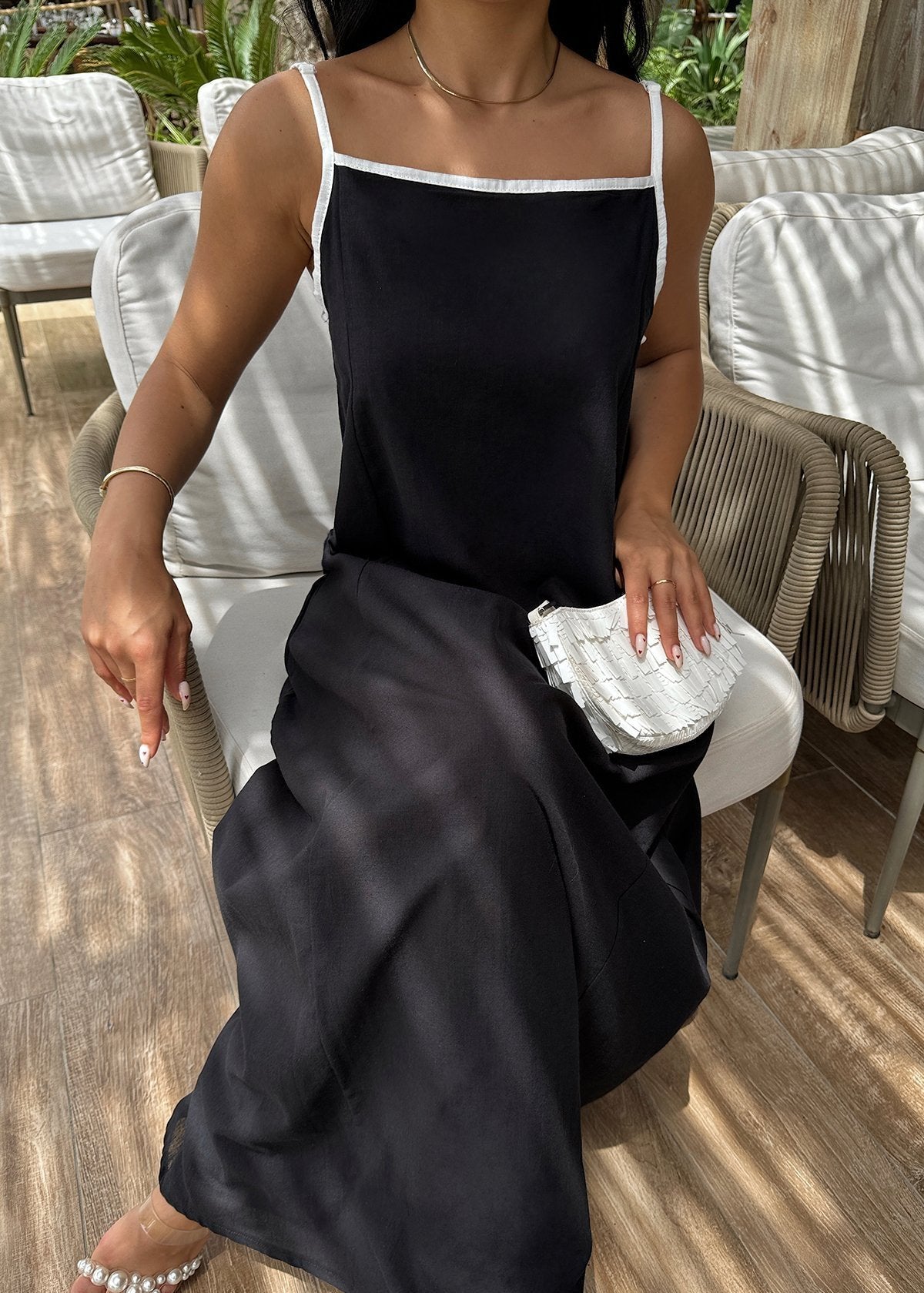 Gaiia Halter Neck Black Long Amanda Dress - Black