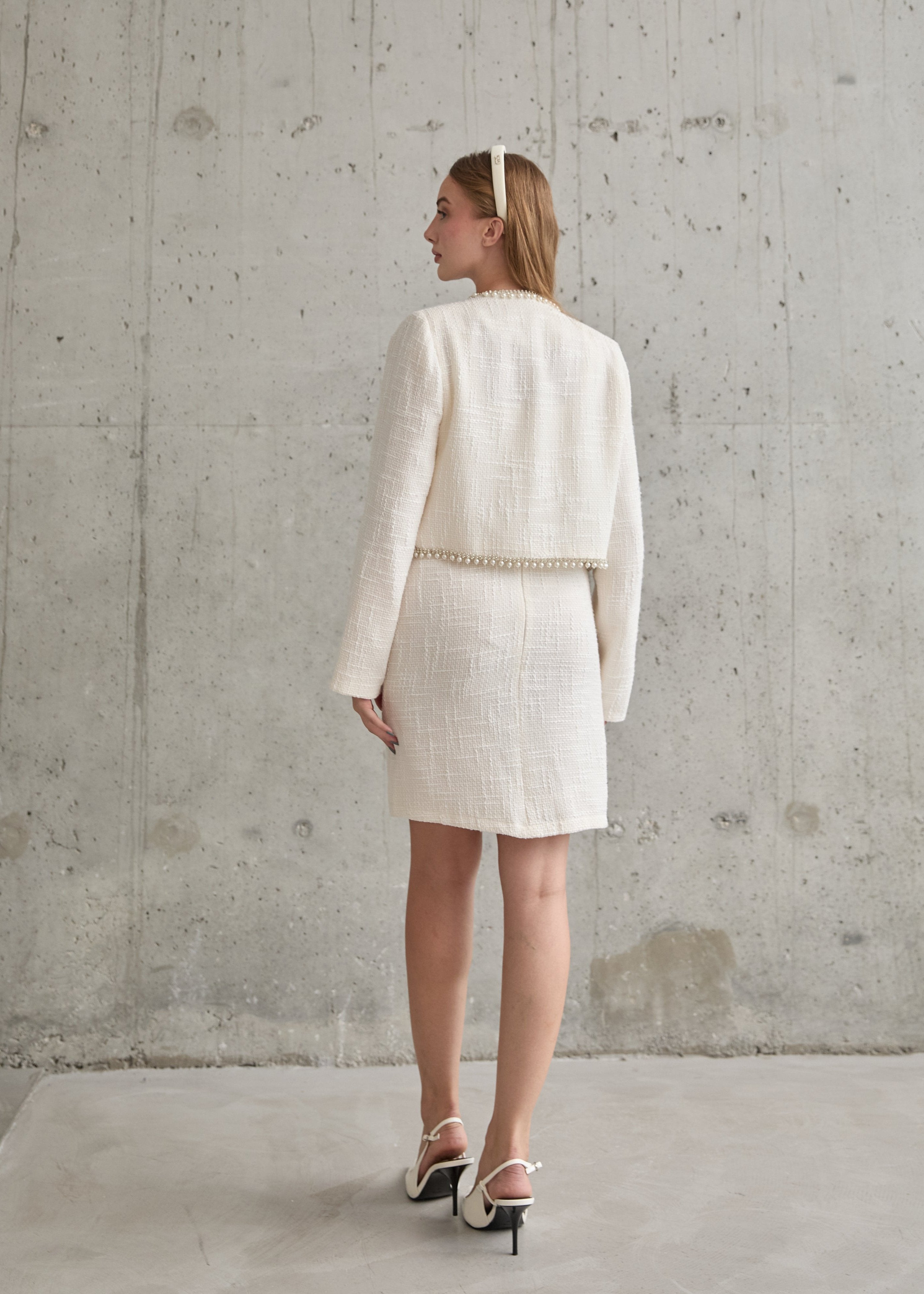 Step into elegance with our Pearl Striped Jacket and Dress Set. The stunning pearl striped design adds a touch of sophistication to your wardrobe. The set includes a tailored jacket and matching dress, perfect for any special occasion. Make a statement and stand out in style. Add a dash of elegance to your wardrobe with our Pearl Striped Jacket and Dress Set. The matching tailored jacket and dress create a sophisticated look that's perfect for any special occasion. Not to mention, the stunning pearl striped design will make you stand out in style.
