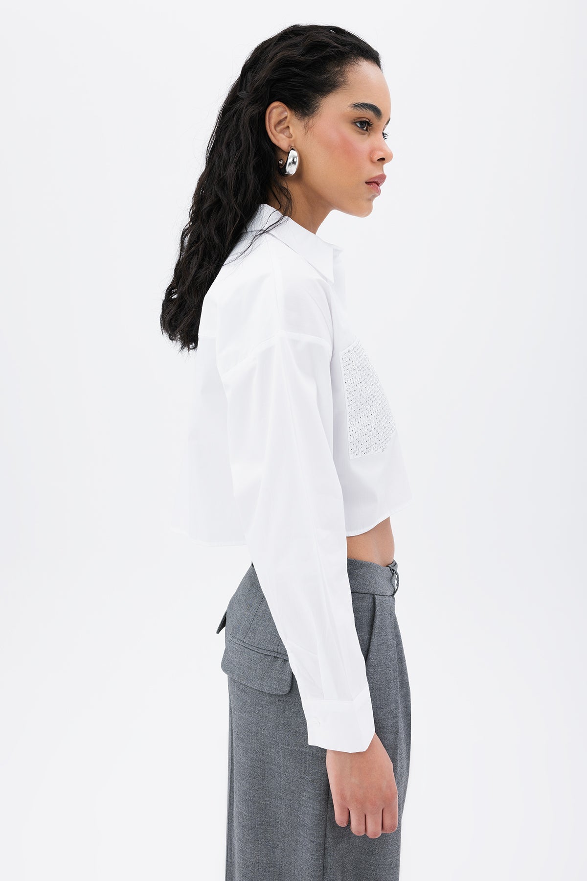 Gaiia Pockets Troc Detail Crop Shirt