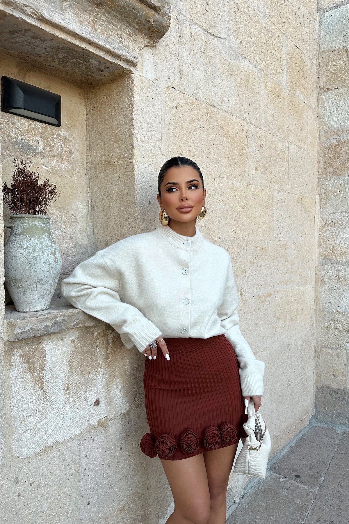 Elevate your style with this playful Rose Detailed High Waist Mini Skirt. Featuring detailed rose embroidery and a high waist design, this skirt adds a touch of fun and femininity to any outfit. Perfect for a night out or a day at the office, this skirt will have you feeling confident and stylish. (Get your flirt on with this rosy mini skirt!) "Get ready to turn heads with this flirty and feminine mini skirt! With intricate rose embroidery and a high-waist design, this skirt will elevate your style and add a playful touch to any outfit. Whether you're hitting the town or heading to the office, you'll feel confident and stylish in this must-have piece. (And for extra fun, we've added a dash of flirtatious flair with those rose details!)"