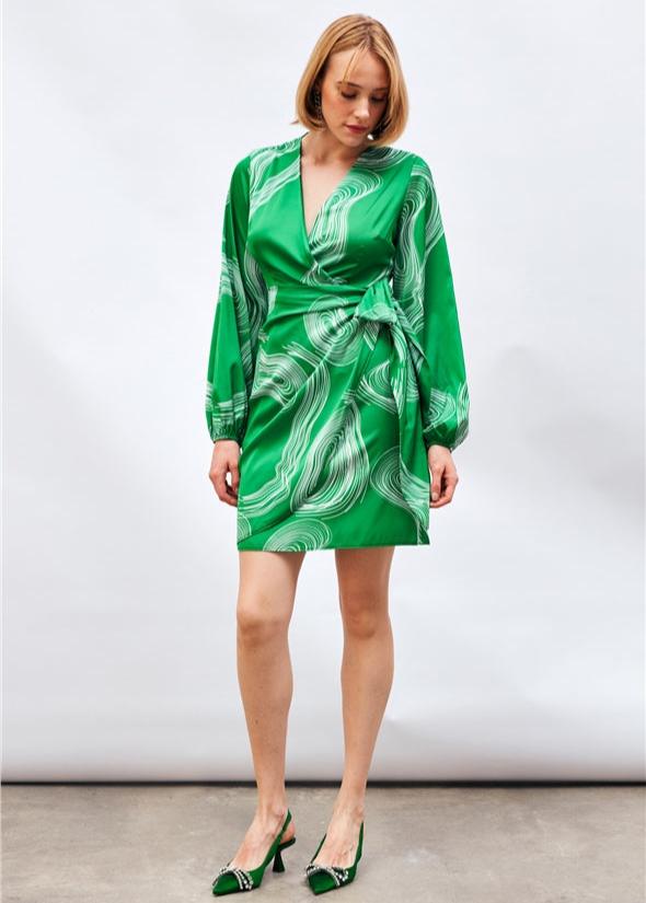 Wrap yourself in luxury with this Satin Printed Wrap Around Dress. The soft satin material and unique wrap design will make you stand out from the crowd. Perfect for a special occasion or a night out on the town. Go ahead, pamper yourself in style! Indulge in the ultimate combination of comfort and fashion with our Satin Printed Wrap Around Dress. Featuring a soft satin material and a one-of-a-kind wrap design, you're sure to make a statement wherever you go. Whether it's a fancy event or a fun night out, treat yourself to the perfect blend of luxury and style!
