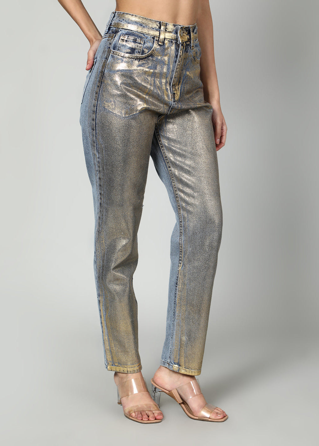 Get ready to shine with our Shimmer Denim Straight Leg Jeans! Made with a unique shimmer denim fabric, these jeans will add a touch of glam to your wardrobe. The straight leg design provides a flattering fit and the denim material offers comfort and durability. Elevate your style game with these sparkling jeans.