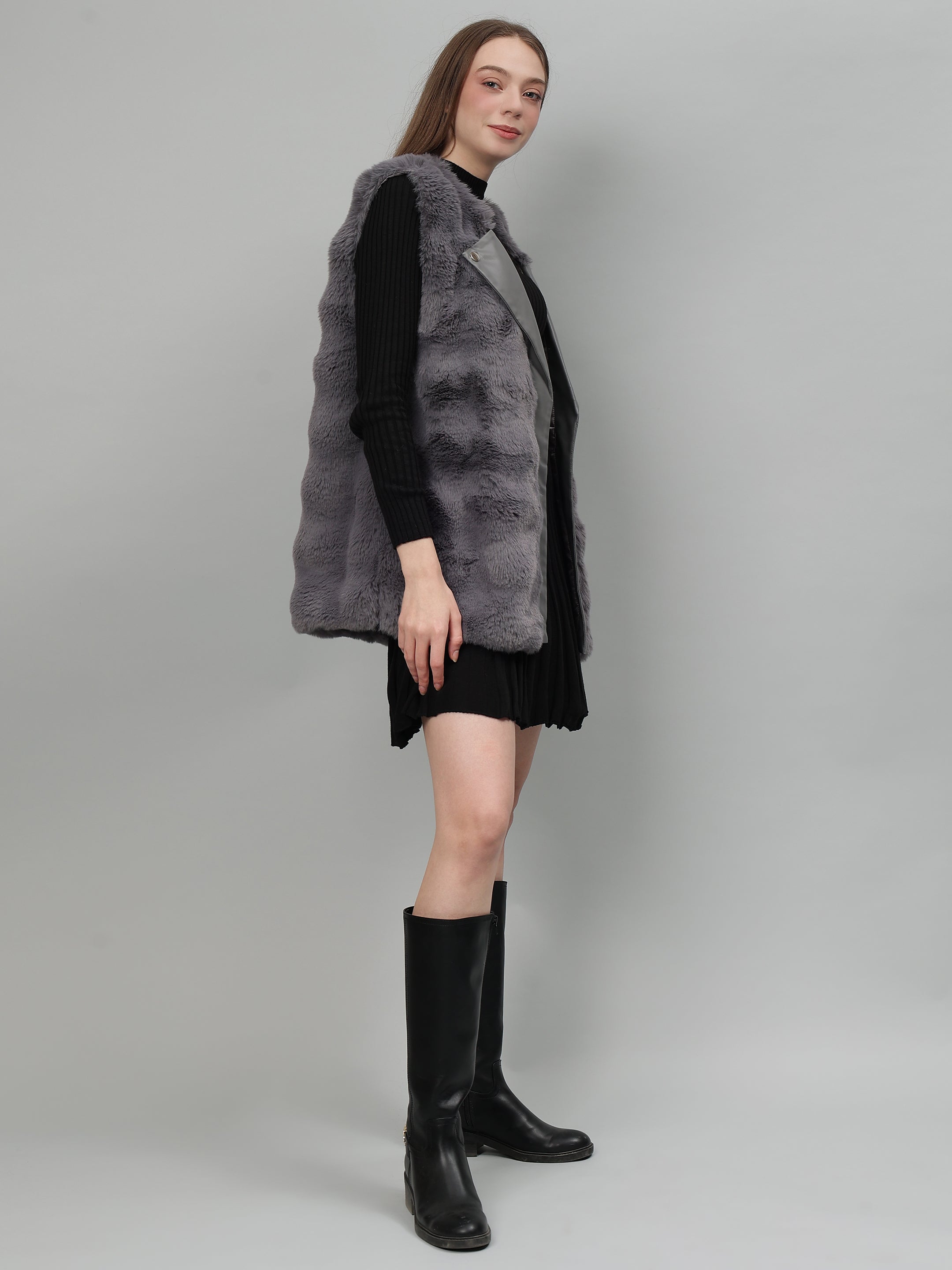 Unleash your inner fashionista with our Sleeveless Faux Fur Jacket! Made with luxurious faux fur and a stylish leather lapel, this statement piece will elevate any outfit. Stay warm and look effortlessly chic at the same time. Upgrade your wardrobe now!
