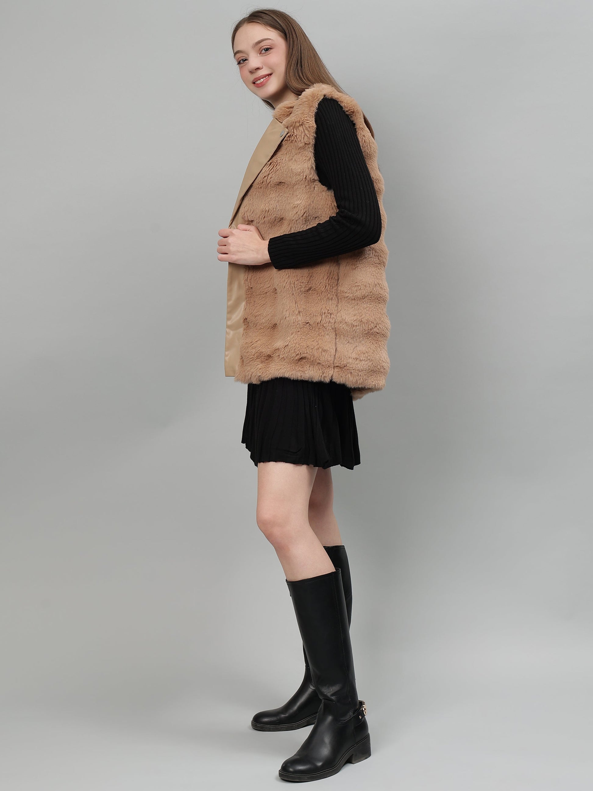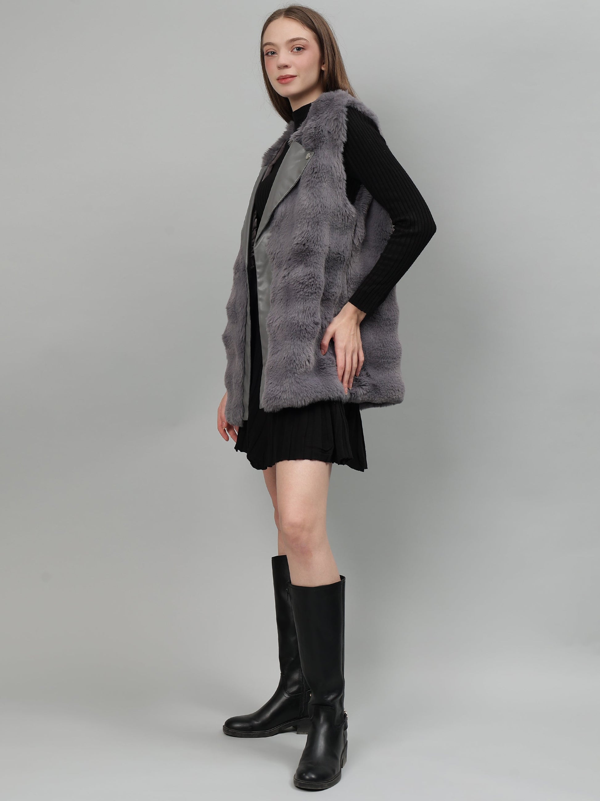 Gaiia Sleeveless Faux Fur Jacket With Leather Lapel