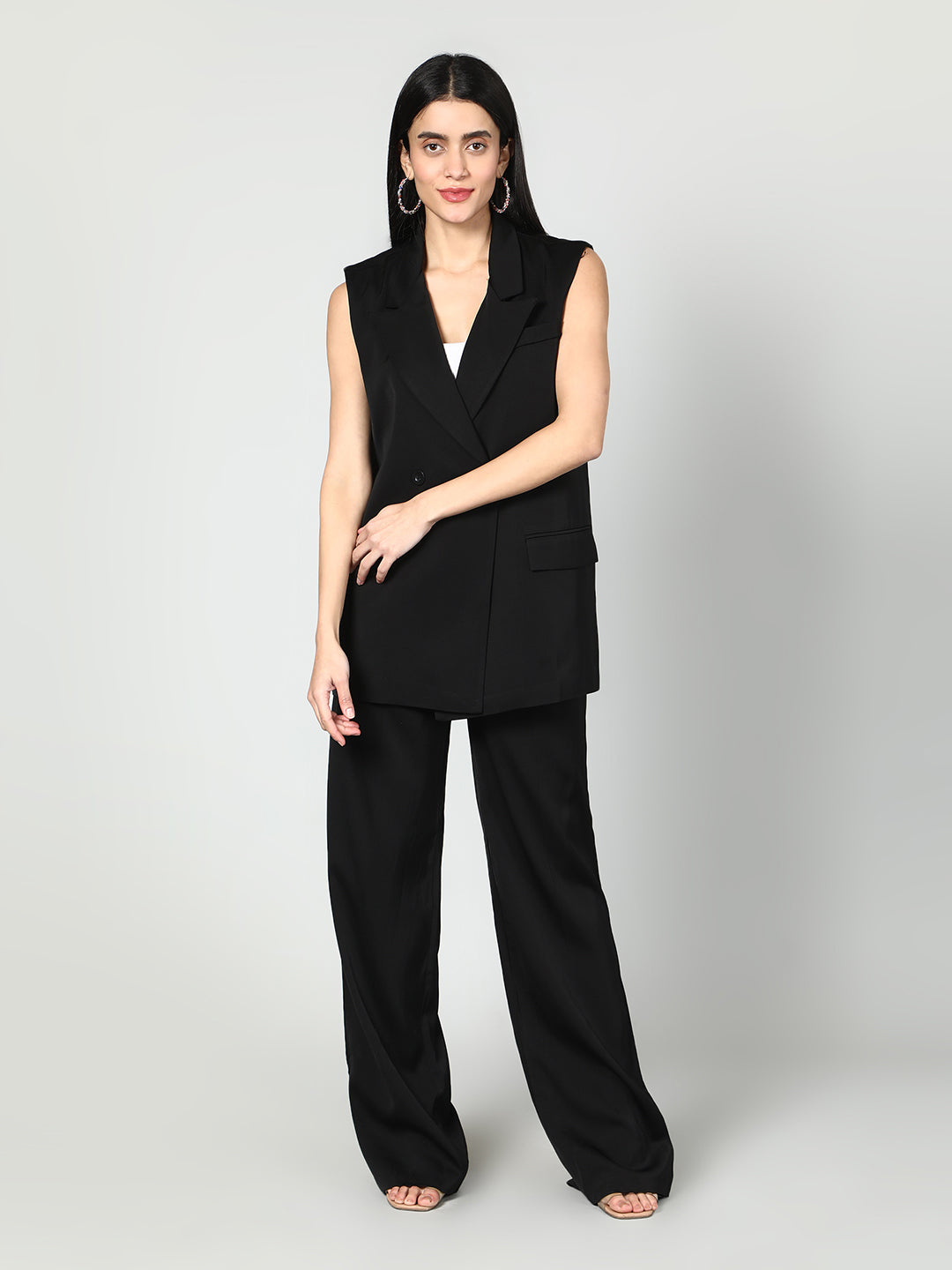 Get ready to make a statement with this Sleevless Blazer and Trouser Set! With its sleek design and comfortable fit, you'll feel confident and stylish wherever you go. Perfect for both work and play, this set is a must-have for any wardrobe. Dress it up or down for endless outfit options with this outfit set, you'll make a statement that's both stylish and versatile. Whether you're out on the town (or just feeling bold at the office), this set has you covered. Just think of all the outfit possibilities!