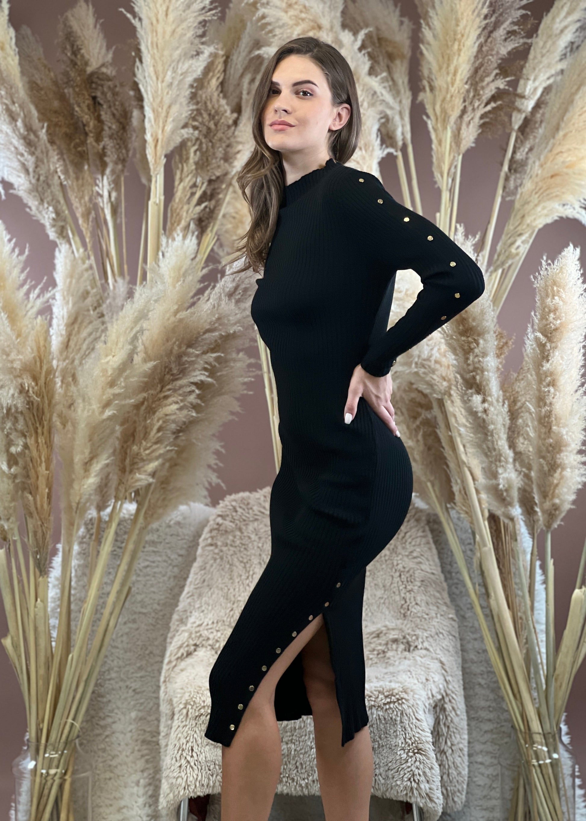 Wear this Slit Ribbed Knit Midi Dress to show off your playful side. Made with a comfortable ribbed knit fabric, this dress features a stylish slit for added charm. Perfect for any occasion, this dress will keep you feeling confident and trendy. Don't miss out on this must-have addition to your wardrobe! Turn heads and show off your playful side in this Slit Ribbed Knit Midi Dress. Crafted from a cozy ribbed knit fabric, this dress flaunts a stylish slit that adds charm to your look. Perfect for any event, this dress will boost your confidence and keep you on-trend. Don't miss out on this wardrobe essential!