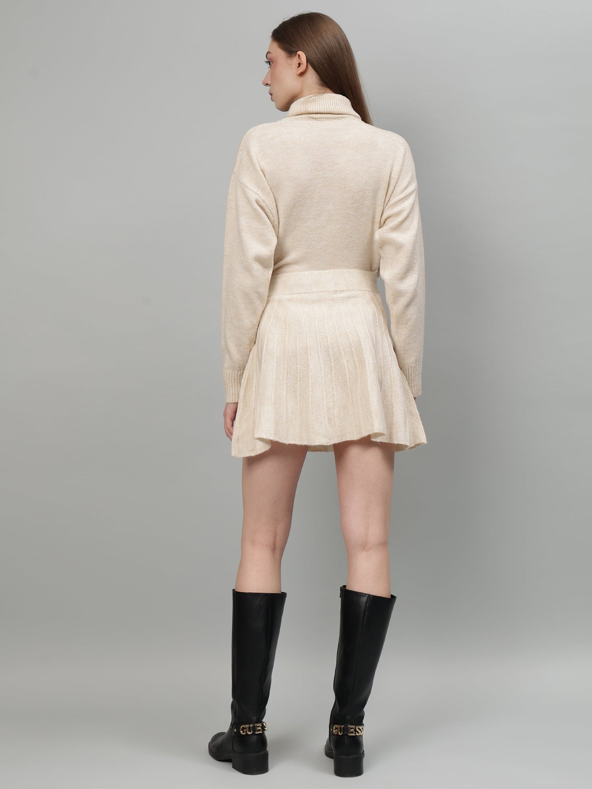 Gaiia Solid High Neck Mini Skirt Co-Ord Set