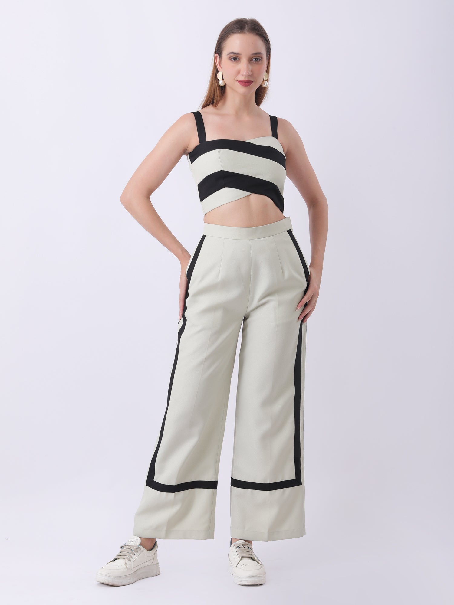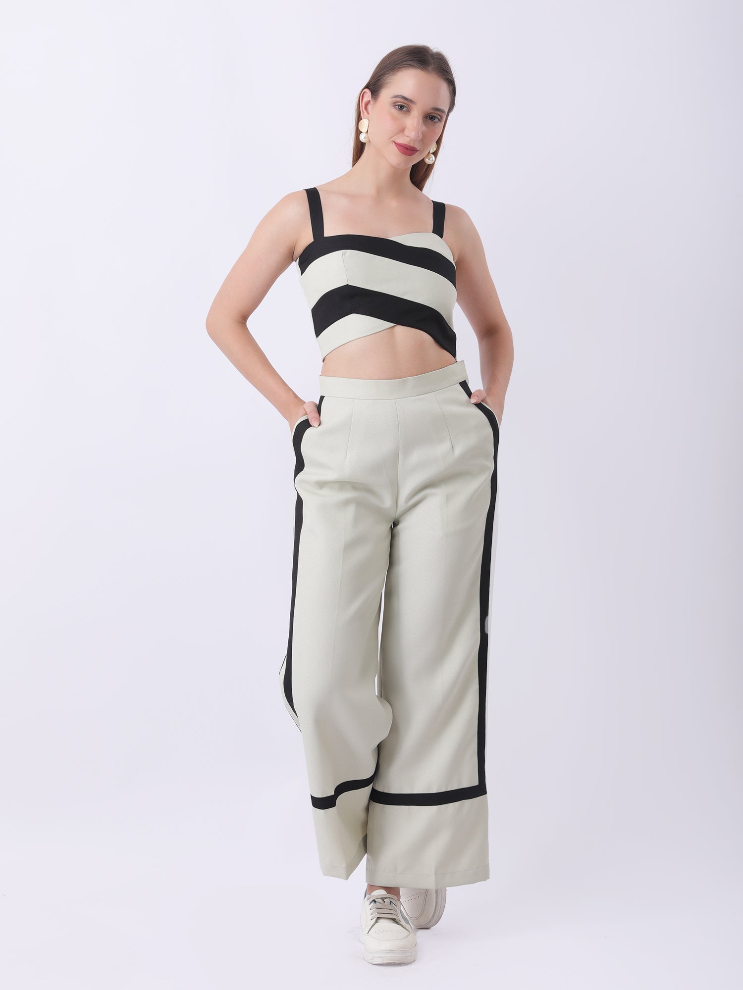This striped co-ord set offers a chic and modern look, perfect for any occasion. Made from high-quality materials, it provides both style and comfort. The sleek design and versatile stripes make it a must-have for any fashion-forward individual. Elevate your wardrobe with this trendy and functional set.