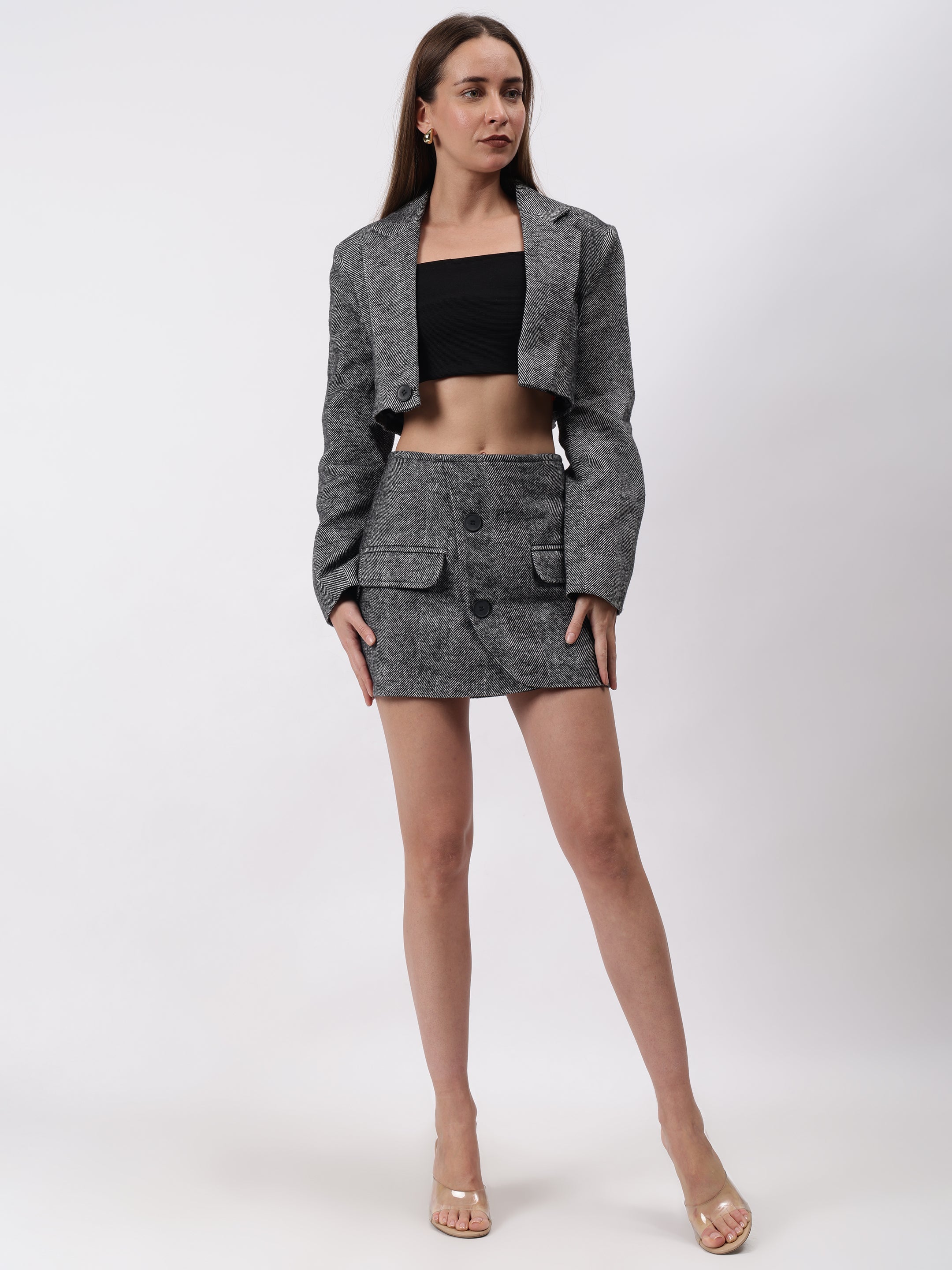 Upgrade your wardrobe with this Tweed Cropped Blazer And Mini Skirt Set. Perfect for the bold and adventurous fashionista, this set exudes confidence and sophistication. Made from high-quality tweed material, this set will make you stand out from the crowd and conquer any challenge in style!