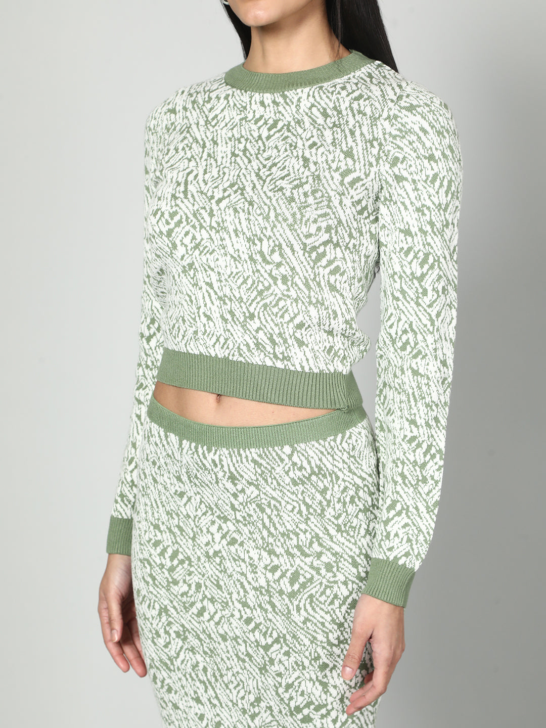 Gaiia Two Color Self Print Skirt Co-Ord Set - Green