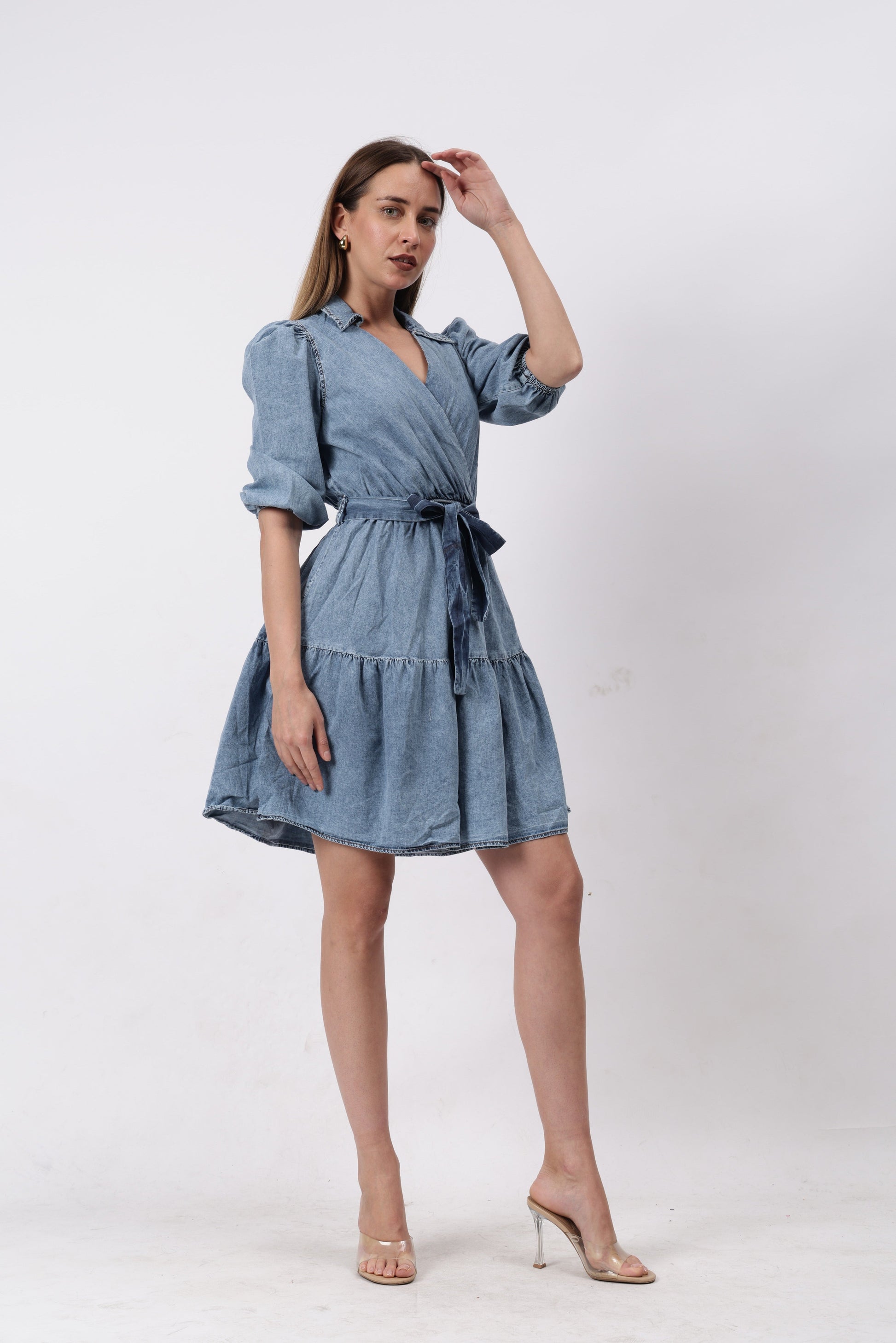 This Wrap Around Denim Dress is designed for both style and comfort. Made from high-quality denim, it features a flattering wrap design that accentuates your figure. Perfect for any occasion, this dress is a versatile addition to your wardrobe. Upgrade your fashion game with this must-have dress.