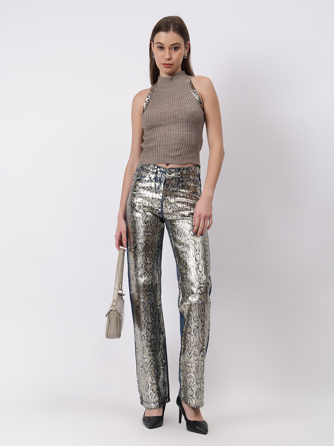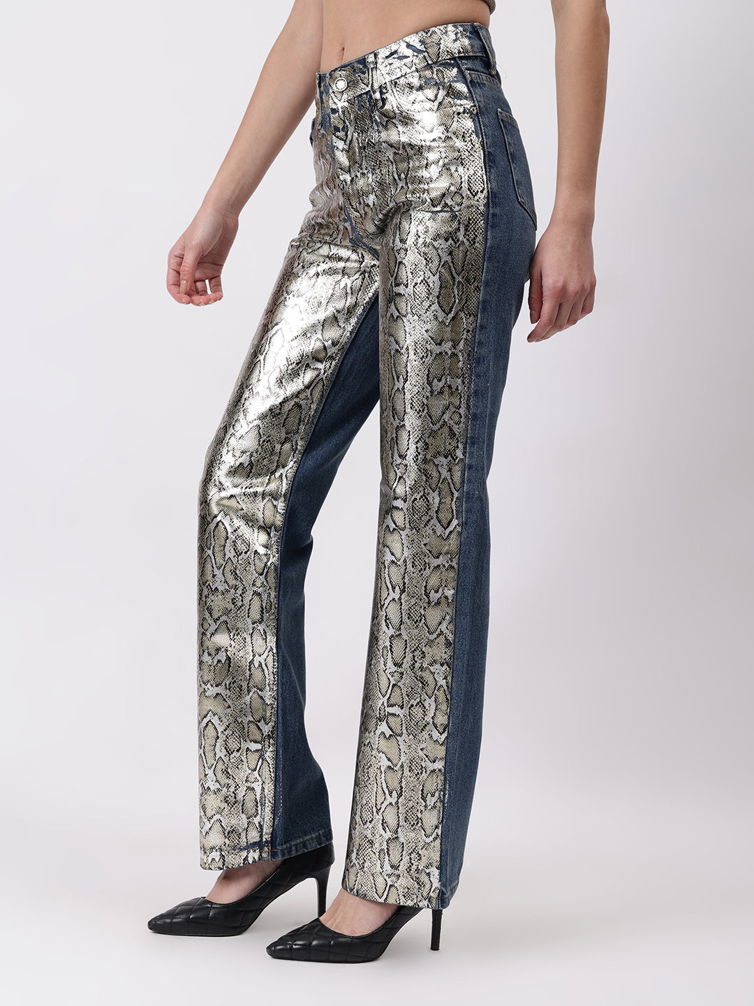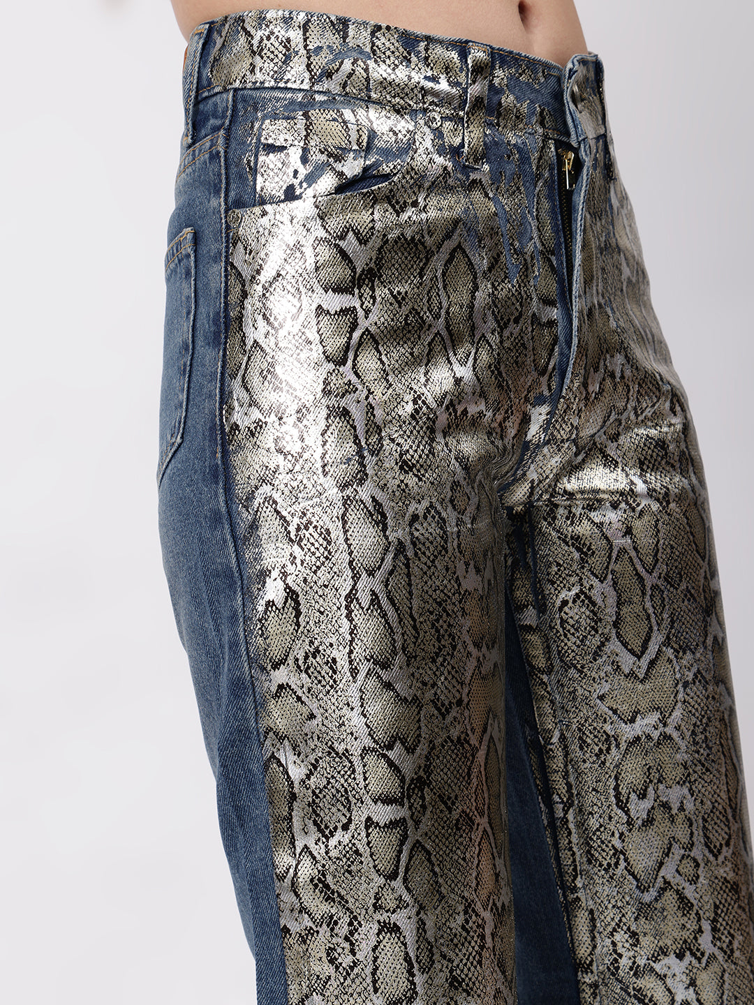 Crafted from high-quality, durable denim, our Golden Snake Print Denim pants are a must-have for any fashion-forward wardrobe. With a unique golden snake print design, these pants add a touch of edgy sophistication to any outfit. Stand out from the crowd with these statement-making pants.