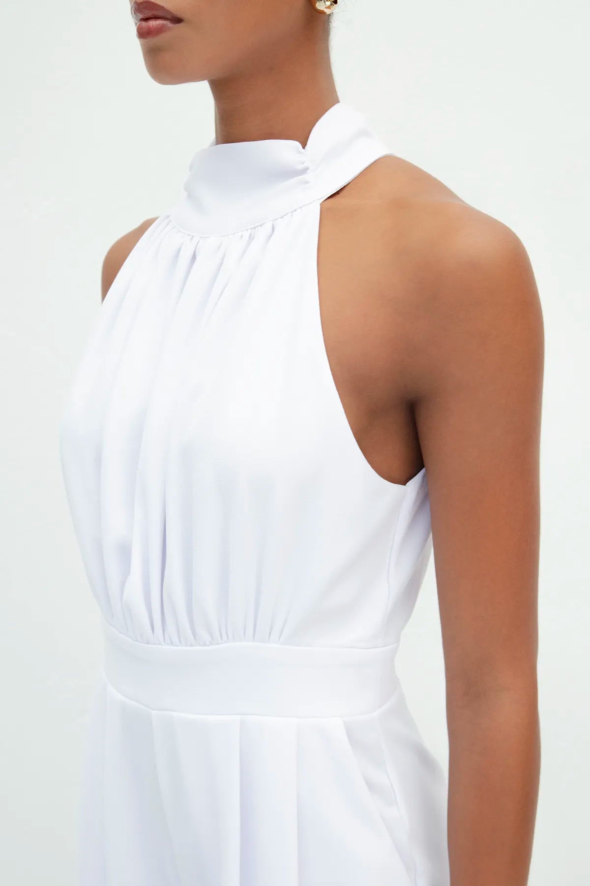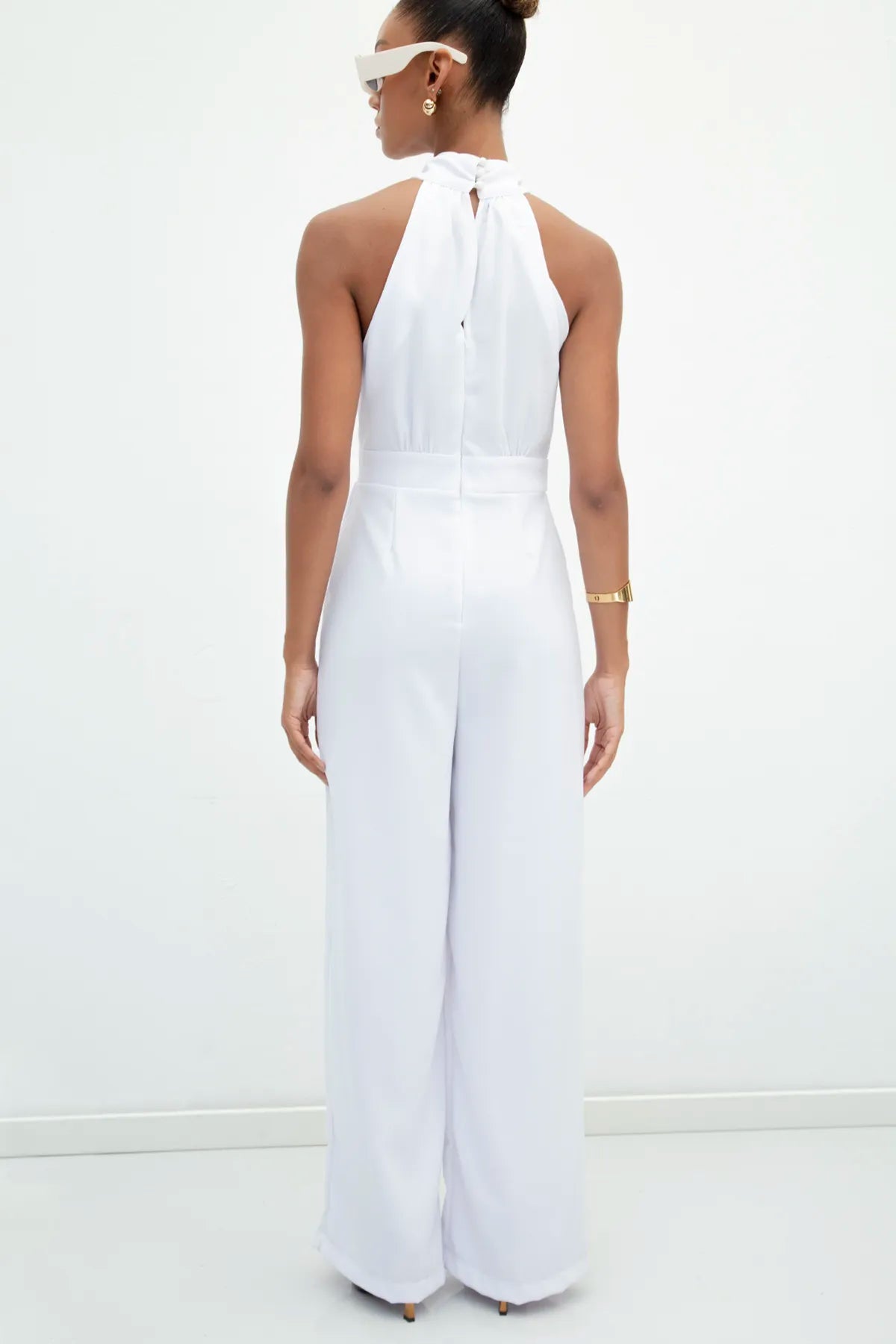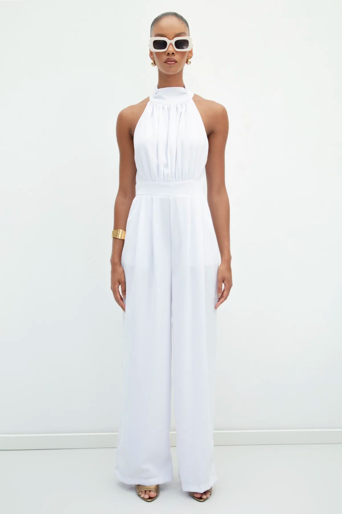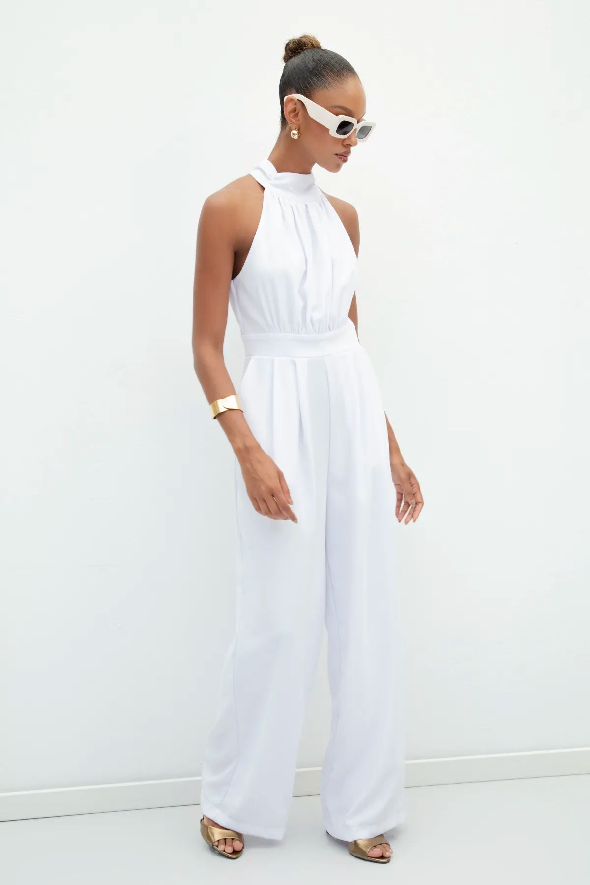 Get ready for compliments galore with our halter neck sleeveless jumpsuit! Whether you're running errands or tearing up the dance floor, its solid color and comfortable fit will have you feeling confident and stylish. With this playful piece in your wardrobe, you'll be ready for any occasion!From running errands to hitting the dance floor, our sleeveless jumpsuit gives you endless possibilities. With its comfortable fit and playful style, you'll be ready for anything! (And don't forget to snap a pic for the 'gram!)