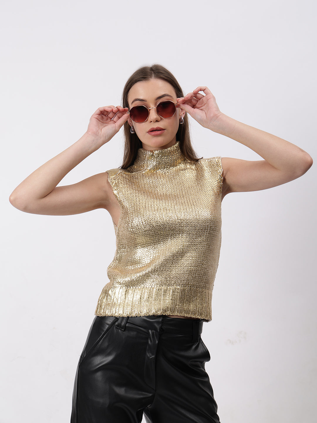 Elevate your style and shine bright with our Sleeveless Metallic Winter Top! This statement piece is cool, sparkly, and oh-so-comfortable. It's perfect for layering or making a solo statement. You'll be the star of the show wherever you go in this glamorous top. Keep shining, fashionista!